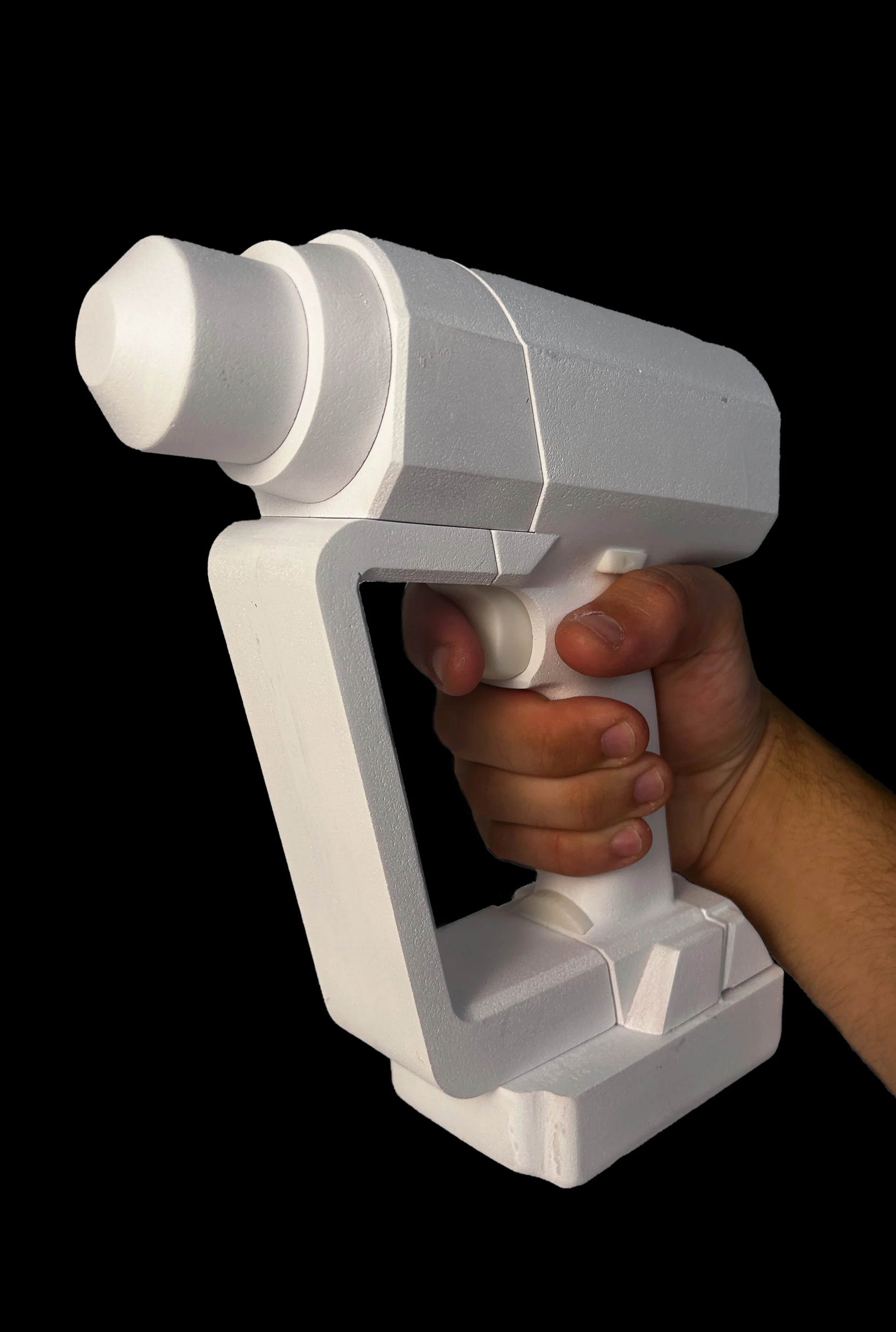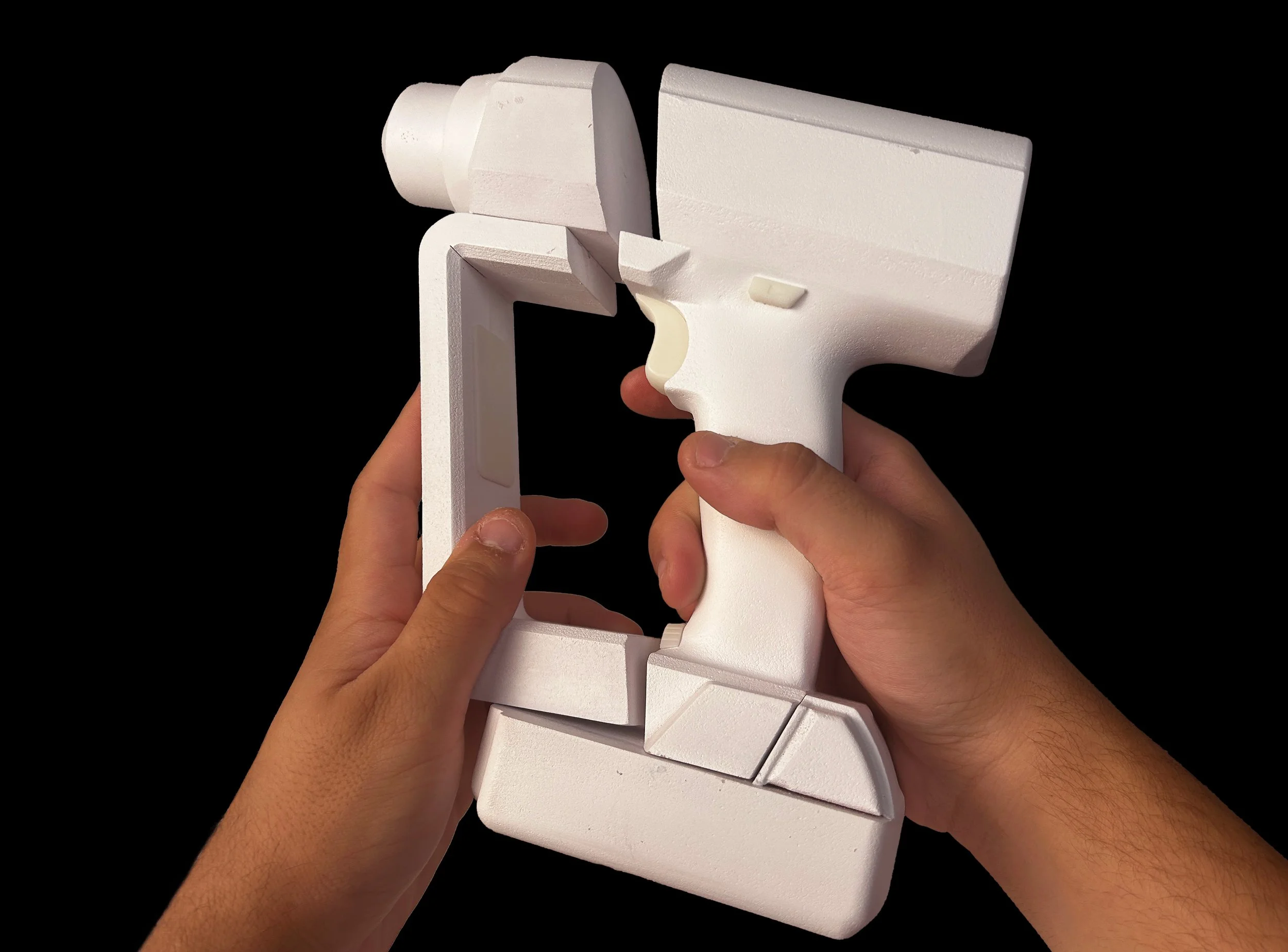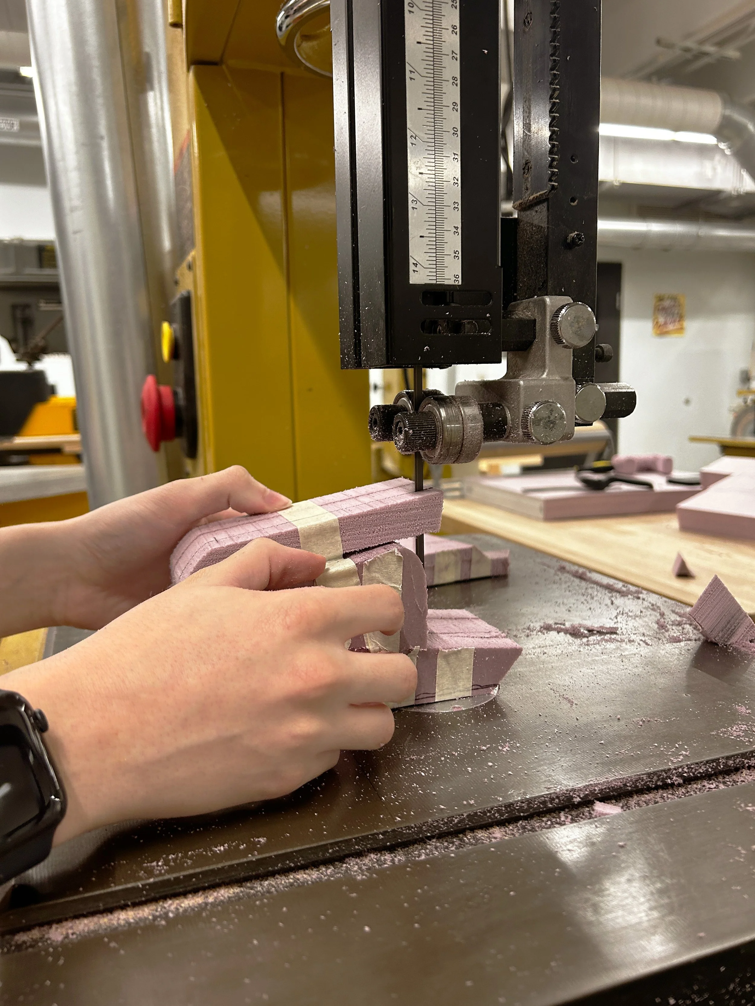 Using foam, sandpaper, and a bandsaw I explored several different designs testing out the ergonomics.
