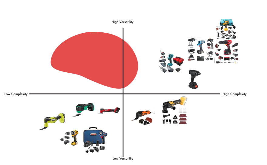 Designing a Milwaukee rotary multi-tool to give beginners the tools they need to wood work and introduce them into the brand’s ecosystem.