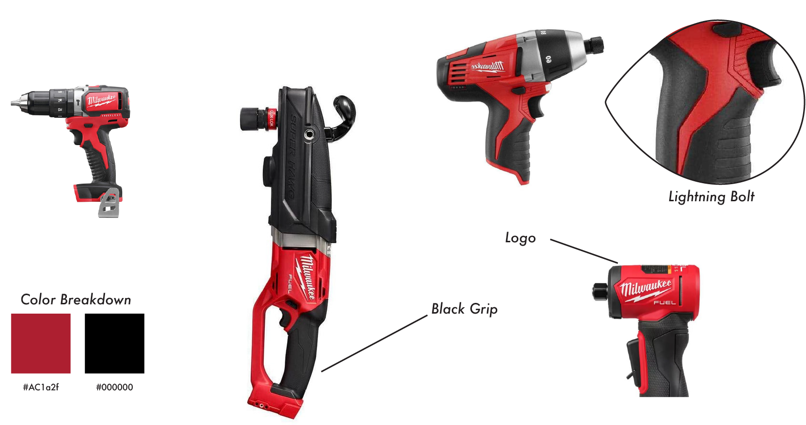 Known for its tough red and black design Milwaukee tools sells to prosumers and professionals.